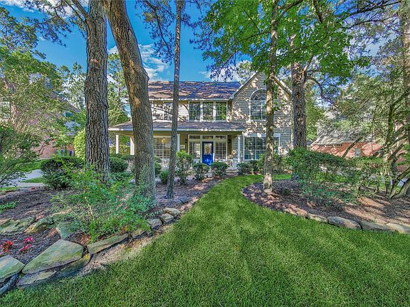 Welcome your friends to sit with you on your charming front porch and enjoy a glass of wine or a coffee while watching the kids play, and the world go by. This beautifully updated Lifeforms "Brentwood" plan in the central Woodlands neighborhood of Cochrans Green is light, bright, & open. Featuring gorgeous marble counters in the kitchen, sleek backsplash tile, white cabinetry, and an easy-care tile flooring this home is within walking distance of Powell Elementary. The popular color palette is soft and inviting. The kitchen offers gas cooking, stainless appliances, updated lighting, and an eat-in bar countertop. The focal point of the family room is the gas log fireplace. Primary bedroom downstairs has a large walk-in shower in the owner's bath, double sinks, & spacious closet. Upstairs there's a central game room, 3 nice-sized bedrooms, one with an en-suite, & a great walk-in attic storage area. You'll love entertaining family & friends in the pool & spa in your own backyard. Lovely!