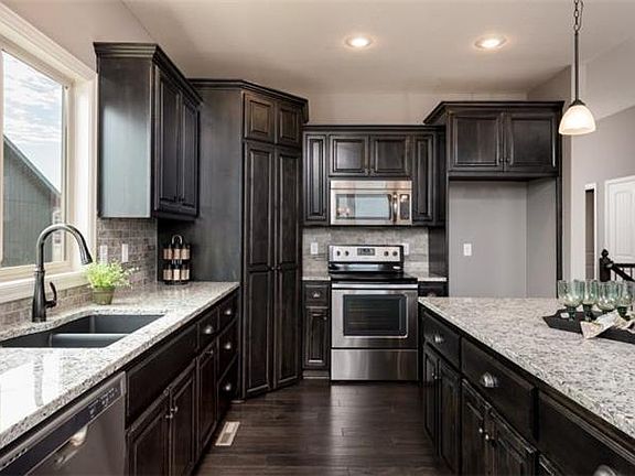 • Kitchen Island, Pantry, Stained Cabinets, Walk-In Closet(s)