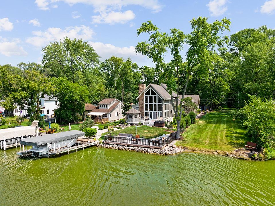 Gloriously whimsical, this house has all the character, comfort, ease and beauty of a true RIVER FRONT GEM. Stacks of windows frame the riverside view. 26' CEILING IN THE FAMILY ROOM with a full height STONE FIREPLACE makes this a room for all seasons. Master Bedroom overlooks this fantastic vista with a private balcony created for the view. Top notch custom Kitchen with deep, rich cabinetry, granite and super high end stainless steel appliances including Dacor, Maytag, etc. Impressive, oversized fridge. Under cabinet lighting, crown molding, etc. Living Room to the rear of the home is perfect for movie night - and you can fit a crowd in this awesome 300 square foot room! There are CHARMING DETAILS everywhere! Look for POCKET DOORS and WINDOW SEATS tucked beneath the windows in many of the rooms. BOTH UPSTAIRS BEDROOMS HAVE PRIVATE BATHS. Master bath has a sauna and walk in closet. A third, cozy little bedroom is tucked in under the stairs with a closet adjacent. It's currently being used as an office or it would make a great exercise room as well! Are you in love yet? There is so much more! The IN GROUND POOL has been thoughtfully built in to a sunny alcove creating a private spa feel for afternoon swims and an extra layer of safety has been installed with a locking access door to the pool area. What will you store in the huge, HEATED 3+ CAR GARAGE WITH 33' BAY? The 4th bedroom is a sweet, secluded STUDIO APARTMENT upstairs with a separate entrance that has total measurements of about 17x37 with a walk in closet, kitchenette and gorgeous bath. Fire pit. Gazebo. PIER, BOAT LIFT AND BRAND NEW HOT TUB!