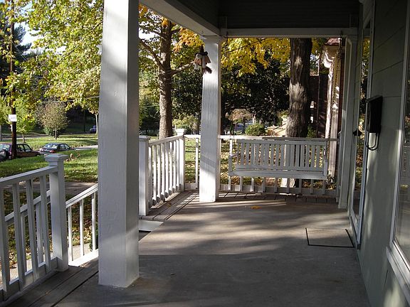Spacious unit with a great floor plan, high ceilings, and large windows that offer lots of natural light. Large living room, great dining room both with hardwood floors. Front porch with porch swing plus private back yard for outdoor enjoyment. Central heat and A/C with digital thermostat. New high efficiency furnace. Laundry in basement. Off street parking. No Smoking. Water paid by owner.