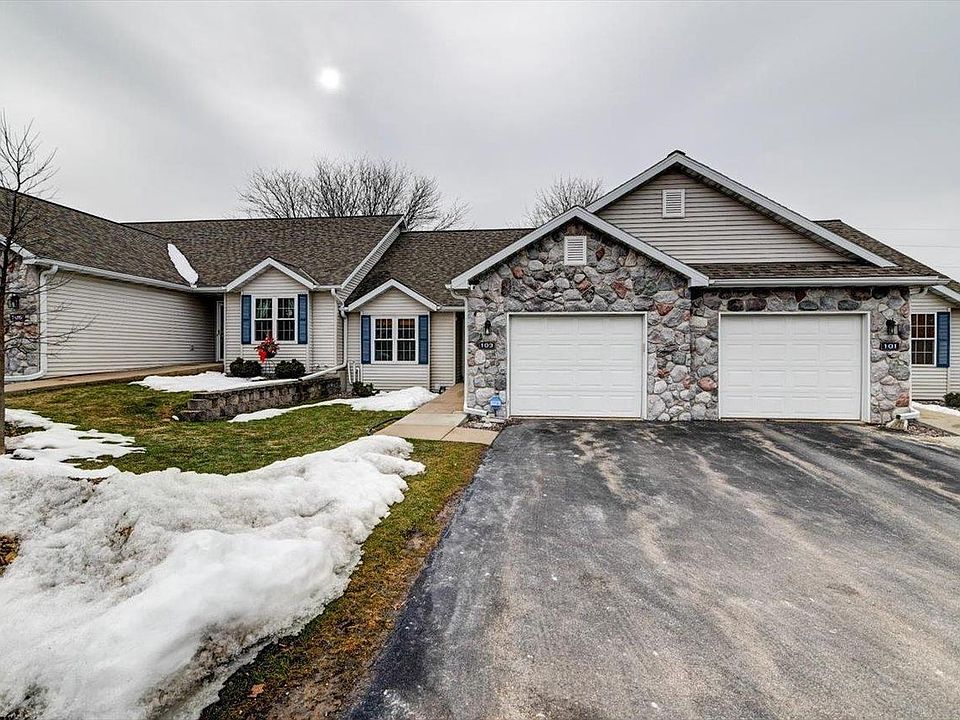 Isn't beautiful, isn't she lovely? You'll be singing that song when you're walking through this meticulously maintained condo in highly desired Carriage Homes association. Private entry and attached garage equip this 2 bed 3 bath condo with all the must haves. First floor comes with updated appliances, smart features, large living room with vaulted ceilings and a sun room with an adjacent deck. Lower level boasts a perfect rec space with a fire place and tons of storage. Located on the east side of Sun Prairie right next to Pick n Save, Cannery Square, Angel Park, and much more! Condo ownership has never been easier.