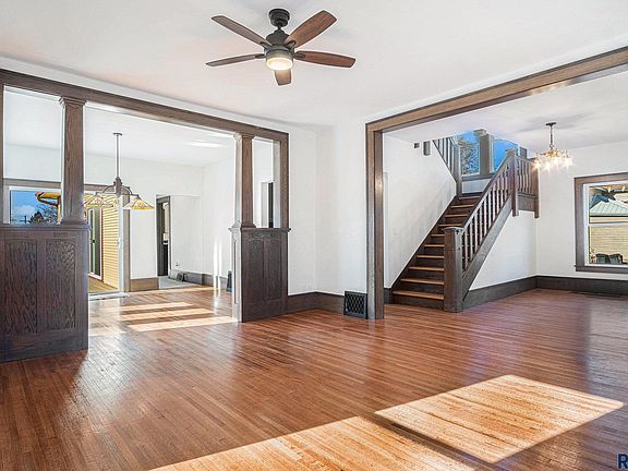 Renovated Historic Home: A stunning blend of yesteryear's character and today's sophistication, fully restored to showcase original architectural details like ornate trim and high ceilings, all while incorporating energy-efficient modern systems for peace of mind. Flooring Excellence Throughout: Revel in the warmth of renovated hardwood floors that gleam underfoot, seamlessly transitioning to upgraded tile in high-traffic areas and tasteful carpet in cozy retreats—creating a harmonious flow that elevates every room. Main-Level Master Suite Retreat: Unwind in your private sanctuary on the ground floor, featuring a spacious bedroom with serene views. The oversized walk-in closet boasts custom shelving and an innovative drawer system for organized bliss. The adjoining ensuite bath is a spa-like haven: dual vanities with sleek quartz counters, radiant heated flooring for toasty mornings, and a grand walk-in tile shower enveloped in shimmering glass and stone for indulgent daily escapes. Gourmet Custom Kitchen: The heart of the home shines with bespoke cabinetry in soft-close hinges and premium finishes, complemented by a brand-new appliance suite including a professional-grade range, built-in refrigerator, and farmhouse sink. A cleverly concealed "secret" walk-in pantry offers generous storage for all your culinary treasures—ideal for the aspiring chef or busy host. Heated 4-Stall Tandem Garage: Ample space for vehicles, workshops, or hobbies awaits in this oversized garage, finished with insulated walls for year-round usability, and in-floor radiant heating that banishes winter chills. Accessed via a wide driveway, it's a practical powerhouse for families or enthusiasts. Upstairs Elegance: Ascend via beautifully restored stairs true to the home's period architecture, graced with a handcrafted wood railing that adds a touch of heirloom artistry. Discover three generously proportioned bedrooms, each with ample closet space and windows framing treetop vistas. The crowning jewel is the expansive, top-tier full bathroom: a freestanding clawfoot tub for luxurious soaks, an enormous tile shower , heated tile floors for spa-level comfort, and a statement custom tile wall that infuses artistic flair. Convenient Main-Floor Living Spaces: Laundry duties are a breeze in the dedicated room equipped Washer/Dryer rough-in's and folding counter as well as a much needed utility sink. Adjacent, a substantial mudroom serves as a stylish buffer. Outdoor Invitations: Welcome guests from the inviting, low-maintenance covered front porch—perfect for rocking chairs and neighborhood chats, crafted with composite decking for enduring beauty. Around back, a spacious maintenance-free deck extends your living space al fresco, ideal for barbecues, yoga sessions, or stargazing under string lights. Expansive Concrete Driveway: Park multiple cars, RVs, boats, or "extra toys" with room to spare on this wide, durable concrete expanse—crack-resistant and snow-melt ready, ensuring hassle-free access year-round. This home isn't just a property; it's a lifestyle upgrade, where every renovation whispers quality and every space invites joy. With its historic soul intact and modern heart beating strong, it's poised for new memories.