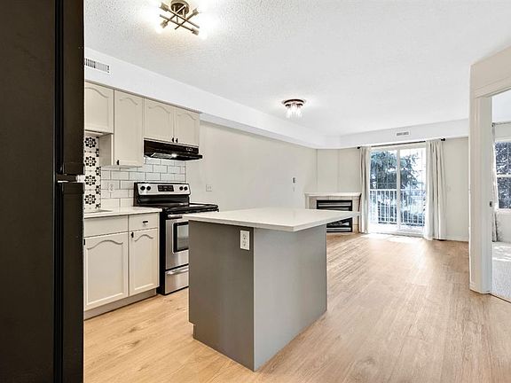 Step into this bright and welcoming condo featuring 2 spacious bedrooms and a versatile den—ideal for a home office or guest space with a beautifully updated full bathroom. Enjoy the modern kitchen with brand-new quartz countertops, refinished cupboards with soft close, and a stylish new backsplash. Fresh paint throughout the home complements the new vinyl plank flooring and carpet, giving the space a clean, contemporary feel. The living room has a corner gas fireplace and patio doors leading you out to the balcony with a new wood decking. Updates also include hot water tank, washer and dryer (2 years old), sinks, updated light fixtures in main areas and decking. This unit includes 2 parking spots, 1 right in front of the unit and 1 just to end east of the building. This move-in ready unit is perfect for first-time homebuyers or as a smart investment opportunity. Don't miss your chance to own this beautifully refreshed gem! Walking distance to schools, the hospital, arena and pool! Quick access to shopping and the highway should you commute to Calgary.