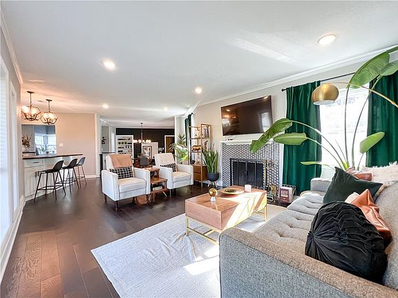 This beautifully updated ranch home offers the perfect blend of modern design and comfort, nestled on a large .41 acre corner lot. The open concept main level features a spacious living room with sleek laminate wood flooring throughout, a stunning mosaic tile fireplace, and new windows that bring in an abundance of natural light.