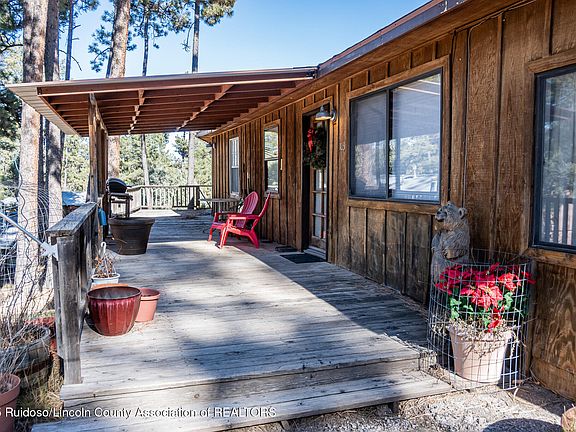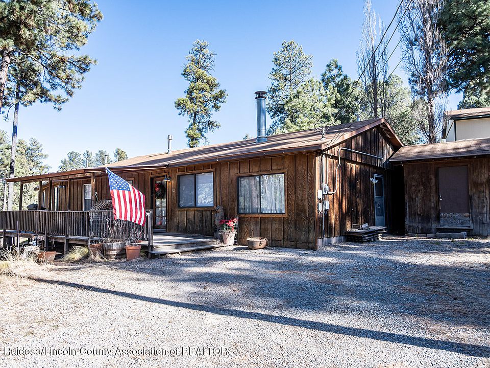 Mountain home with Sierra Blanca views tucked under the tall pines! This versatile four-bedroom, two-bathroom home features two separate living areas, a main kitchen and a kitchenette creating the perfect mother-in-law or guest quarters. There are two bonus rooms that can be used as a shop, art studio, or flex space. Take in the Sierra Blanca views on the covered deck under the tall pines. This one level home comes with ample parking space, storage shed, and a large, fenced level back yard.