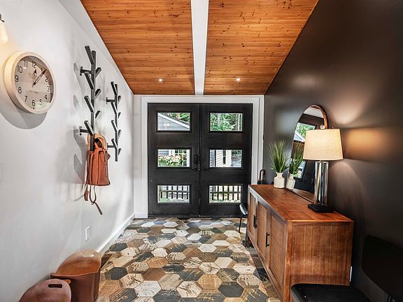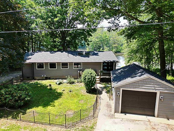 An original Pillsbury Lake camp, the current owners saved the bones but updated the rest! An open floor plan includes a foyer entrance and dining area, into the great room with cathedral ceilings and a wall of windows providing a stunning view of your new lakefront oasis! With over 200 feet of waterfront on this double lot, you can watch the kayakers and fishermen go by while relaxing in your living room. The large kitchen has two large skylights and is the heart of the home with room for entertaining. The beautiful fireplace with wood stove insert is the perfect spot to cozy up in the winter after a skate on the lake! The master bedroom, with views that rival the living room, has a walk-in closet and bathroom suite featuring a huge soaking tub, gorgeous shower, and ample storage. A second large bedroom, and newly renovated 3/4 bath round out the fully updated main floor. The lower level with walk-out access to your backyard was finished this year and features a large office, second living space with beautiful hearth and pellet stove, as well as another full bath and laundry room. The home is turnkey with recent major improvements including a new well with whole house filtration system; new roof, siding, and windows; new furnace and central AC, tankless water heater... the list goes on. Your new home requires zero improvement, but there's still room to make it yours! Offers due by Tuesday 6/25 at 8:00 a.m