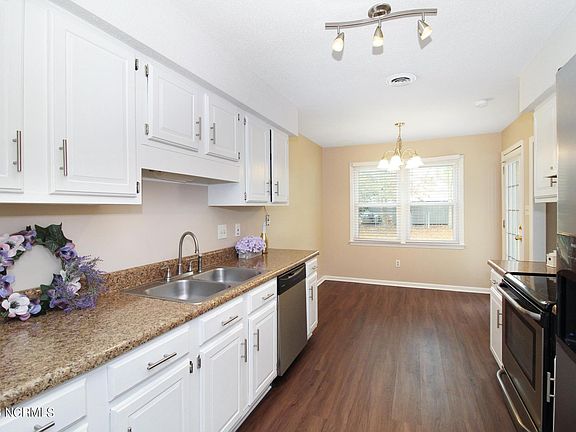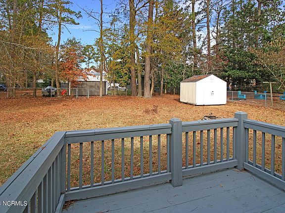 Welcome to Sherwood Forest, an eclectic established tree-lined subdivision with a park right down the street! This charming 3 bedroom 2 bathroom gem is located in the heart of Jacksonville and is conveniently close to shopping, bases and beautiful Crystal Coast beaches. Walk up to the lovely southern front porch and open the door to your next home. This property boasts many wonderful features to include a large fenced backyard, a brick fireplace, a spacious galley style kitchen, and a breakfast nook full of natural sunlight. The master bedroom has an ensuite bathroom and an oversized closet for extra storage. Spend the Carolina evenings relaxing on the sundeck or roasting marshmallows by the firepit. Buyer possession before closing may be considered with an acceptable offer. Vacant and ready to view today! This is one you do not want to miss!