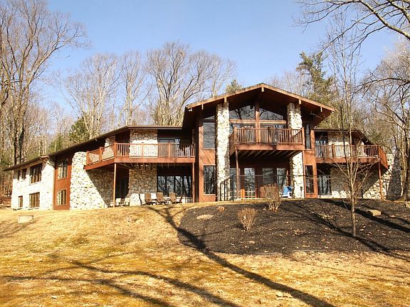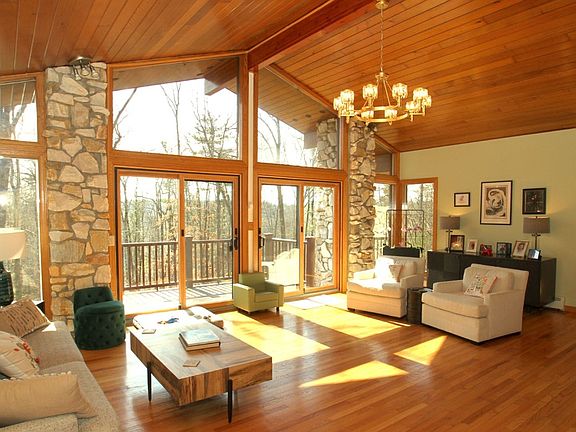Paradise Retreat in the Woods. Tranquil setting has a nested contemporary ranch home loaded with windows, each viewing the beauty of nature. Interior has a complete new look featuring cathedral wood ceiling, breath taking entry staircase, Vermont marble fireplaces, luxury European imported wallpaper. Freshly painted throughout, new light fixtures, new kitchen appliances. Home is loaded with Chef's oversized kitchen area, jacuzzi tubs, skylights, beautiful gleaming woodwork, sauna, dog run, four decks, large courtyard, Easy secure access to home. (Home furnishings may be available separate from sale of home)