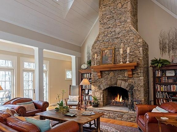 - Fireplace: 2 or More, Living Room, Stone, Wood Burning, Exterior
