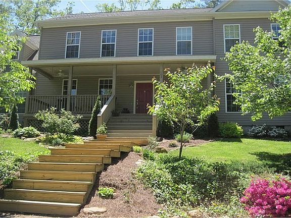A private road leads up a beautiful knoll with seasonal views and privacy, right to the large front porch of this farmhouse style home. 2.50 acreage lot allows for space to roam and play. Back of lot borders acres of Preserve Land and lake rec area a 5-10 min walk from house. Step up on the breezy front porch and enter the open living area with 9' ceilings and custom finished pine floors throughout the downstairs. Fireplace gas ready , open living/dining/ kitchen with cherry cabinets and stainless steel appliances/ eat in kitchen. 6 ft windows through all downstairs, overlooking wooded privacy and seasonal views, provide lots of light. Office/work area off kitchen with lots of shelves for books, crafts or pantry goods. Upstairs is a spacious loft, 3 BR, jack and jill bath, plus 3/4 bath AND a large finished bonus room for exercise/office or 5th BR. Windows flood upstairs with light. This is a perfect home for home for family needing space for gardening/hobby farm , or would make a wonderful extended family vacation home in lovely historic Saluda. Price negotiable. Bring an offer!