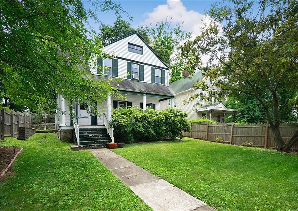 Charming updated 4 bedroom Colonial home with front porch. High Vaulted 9ft Ceilings. Attention to detail and masterful craftsmanship creates a refined yet comfortable feel throughout the open concept main level. Updated kitchen with granite counters, stainless steel appliances and over sized center island. Kitchen opens to light filled dining room and gorgeous living room with fireplace. Original hardwood floors through out. Fenced in yard, lined with stone walls that lead to a fabulous flat backyard with patio. Large detached 2 car garage with plenty of storage. Walk way will take you to the warm and inviting front porch. Home offers 4 nice size bedrooms with plenty of closets and full walk up attic with large storage area. Take a look and you will want to call this your home today. Taxes after the Star deduction are $8,814 (Star Savings is $2,178).
