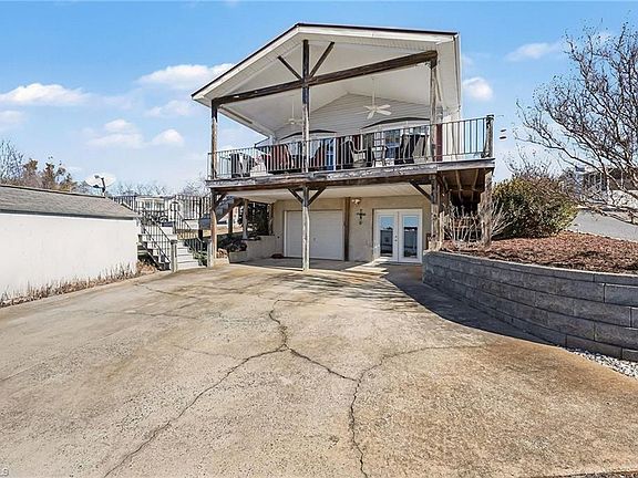 Enjoy wonderful long-range water views of Badin Lake from your spacious covered porch. This 3-bedroom, 2-bath home is located inside the gated waterfront community of Badin Shores Resort and is ideal for full-time living or the perfect lake escape. The main level features an open-concept living and kitchen area along with two bedrooms and one full bath. The updated kitchen boasts custom cabinetry with soft-close drawers and pull-out shelving, granite countertops, tile backsplash, and a charming farmhouse-style sink. The main-level bath has also been updated with custom cabinetry and quartz countertops. The lower level features an additional bedroom and full bath, along with a versatile flex room ideal for a home office, hobby space, TV room, or additional sleeping area. You’ll also find a large custom-designed closet appointed with built-in shelving and drawers. A rare find within the community, this property also offers a garage—perfect for a golf cart, side-by-side, or workshop.