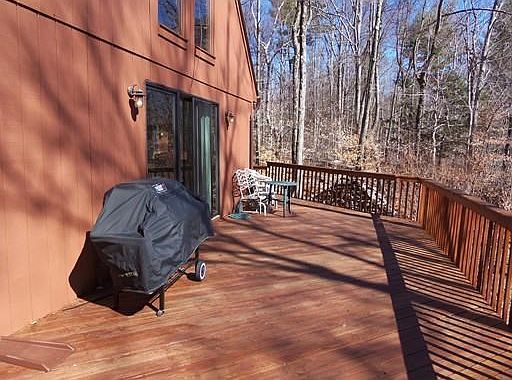 Overlooking the water. Stunning and rare 4 BR contemporary in idyllic setting. Large lot, last house on dead-end street affords lots of privacy. Being sold with or separately from adjoining .5 acre lot, #17, MLS71980643. Cathedral Ceilings, gourmet kitchen w/custom Cherry cabinetry, double oven, granite counters & SS appliances. Cherry floors throughout, stone fireplace in DR, Jotel wood stove in LR, master BR suite w/balcony facing water, custom-tiled bath, granite counter, walk-in shower, double sink, skylight, 2 walk-in closets, den, loft facing water, propane furnace, automatic generator, two decks facing water, 1 covered, 1 open for entertaining, grilling & sunning. Wildwood offers 2 spring-fed, crystal-clear ponds, 5 private, sandy beaches, swimming, fishing, boating (non-gas), tennis, hiking trails, club house, community picnic area, campgrounds, family-oriented activities. Close to Berkshires's venues, skiing, low taxes. Approx. 2.5 hrs to NYC/Boston, 1 hr Hartford