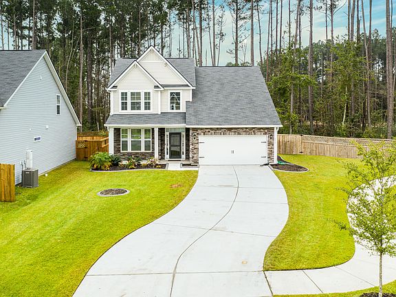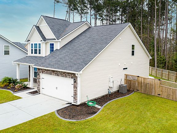 Like new home in the Magnolia subsection of Cane Bay. This home sits on a premium, wooded, cul-de-sac lot which means it has a super long driveway! You'll love the curb appeal - stone front accents and QuickCurb landscaping. Inside, you'll find gorgeous wide plank flooring throughout the living areas and kitchen, a two story entryway, and an open concept floorplan. A formal dining room greets you as you walk in and is connected to the gourmet kitchen via a beautiful butler's pantry. The kitchen features lots of granite countertops, white cabinetry, stainless appliances and a gas stove! The kitchen is wide open to the eat-in area and the large living room. You'll love the tray ceiling in this room and the gorgeous gas fireplace. The laundry room with pretty shiplap accent wall, is just off the living room. The owner's suite is also downstairs. This ample space features a spa-like bath with a double sink, granite vanity and 5ft shower. Upstairs there are 3 more bedrooms, which share a hall bath, and a huge bonus room, which is perfect as a media room, teenager hangout, or game room! You'll love the back yard with custom pergola, extended patio, and 6ft privacy fence. Other features in the home include: tankless water heater, crown molding, oversized kitchen pantry, and wood stair treads. Cane Bay offers a neighborhood pool and walking trails, the state's largest YMCA, shopping, dining, and schools all within the neighborhood. This one is a must see!