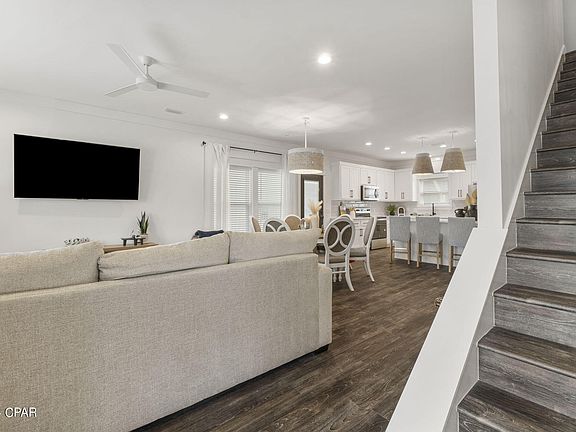 Check out this reduced price and you will want to schedule a private tour of this professionally furnished each house which is steps away from the sandy beach and the inviting water of Panama City Beach. This short term rental is a fully furnished 4 bd, 3.5 bath Beachside residence with 2041 sq ft of living space is priced to sell. House is presently on a rental program however may be toured with appointment. Boasting high ceilings, a gourmet kitchen with quartz countertops, and laminate flooring, this home blends luxury with comfort. Nestled in tranquil Inlet Beach Heights, enjoy proximity to white sands and azure waters. Perfect for your private haven or a high-yield rental opportunity. The interior reveals a sophistication with crown molding, high ceilings and an expansive kitchen island that stands as the heart of the home. Recessed lighting and a smart thermostat provide ambiance of modern ease, white the natural woodwork adds a touch of timeless elegance. Your comfort is paramount, with insulated doors and double-pane windows ensuring a serene living experience. The laminate flooring unifies each room with style and durability, crafting a flow that is both cohesive and inviting. This property is equipped with appliances including a dryer, washer, dish washer, electric oven and range, topped with an electric water heater and three HVAC units ensuring quality temperature control throughout each level of the house. Inlet Beach Heights presents a community where the beauty of nature and the serenity of the beachfront lifestyle converge. From snorkeling to paddleboards, each day promises an adventure, with the emerald waters as your backdrop. This is not just a home; it is a gateway to a lifestyle where every sunset is a celebration and every breeze carries a hint of paradise. You will enjoy the best of both world, the west end of Panama City Beach and minutes away from 30A which provides fine dining, the beach and shopping. Call today to make this once in a lifetime established rental your investment property or enjoy as your private residence. Priced to sell!