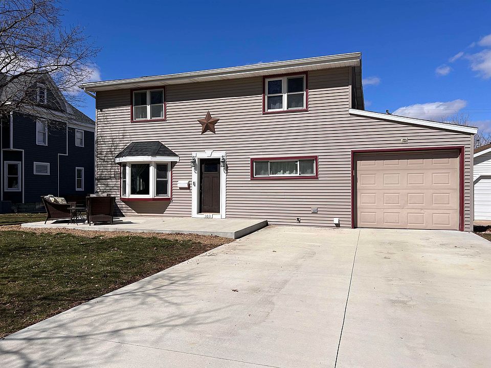 Stop the car!!! Beautiful new listing in Reinbeck. This 2 story home offers something for everyone! As you walk to the front door note the new sidewalk, new driveway, and the new front patio that was designed with an enclosed porch in mind. This patio has frost footings and ready for you to add a porch if you choose. The living room has gorgeous hardwood flooring, a bay window, fresh paint, and recessed lights in the ceiling. The kitchen dining room combo has a lot of counter space and cupboards, plenty of room for that large table for entertaining and a center island with additional seating. A sliding door could walk out to a deck if you choose to building one in the backyard. From the dining room is a small den that would be a perfect reading nook, a game room area or what about a wine, bourbon, or whiskey room? The ideas are endless! The main floor also has a 3/4 bath with fresh paint and wainscotting plus a bedroom (or office). I know you saw the gorgeous oak banister railing and iron balusters when you walked through the front door, these are complimented by the new carpet treads and iron chandelier at the top of the stairs as well as the half moon sunburst window that overlooks the backyard. On the second floor there are 3 bedrooms, the first bedroom is large with beautiful original wood flooring, the second bedroom has an attached queen-sized floating bed frame with lighting underneath, and finally the third bedroom is at the end of the hall. The second floor also has a full bathroom, closet storage in the hall and the hall light switch is on a timer and has a motion censor. Attached to the house is a fully insulated tandem-style garage with a workshop that is heated by a wood stove. The backyard is fully fenced with a wood privacy fence that has 2 gates that are only able to be unlocked from the inside, this fence also has solar lights to make the backyard enjoyable into evening. Inside this fenced yard is a storage shed for additional storage and remember those sliding glass doors in the dining room? There is a deck ledger on the outside so that you are able to build the deck of your dreams onto the house. If you are ready please contact your favorite Realtor for a private tour and ask them to give you a copy of the update list!