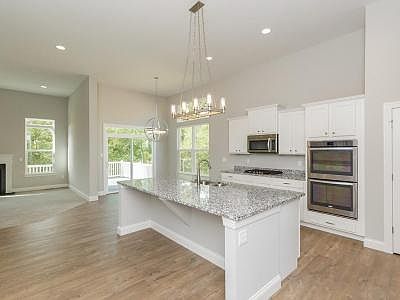 This home is situated on a walkout homesite and features a 3 car garage, 3 bedrooms, 2 baths, and over 2,339 sq.ft. of living space. The interior of this home boasts 9'and 12' ceilings, a gas direct vent fireplace, a 15x19 composite deck, an upgraded deluxe kitchen with large center island complete with granite countertops, staggered height upgraded cabinets, stainless steel appliances and a coffee bar. The tray ceiling, ceiling fan and adult height vanity make the Owner's Suite and master bath the perfect retreat! This spacious ranch home is finished with custom wall paint, upgraded lighting finishes, designer two panel doors, a boot bench at the Owner's Entry and upgraded flooring SHOWING AGENT
