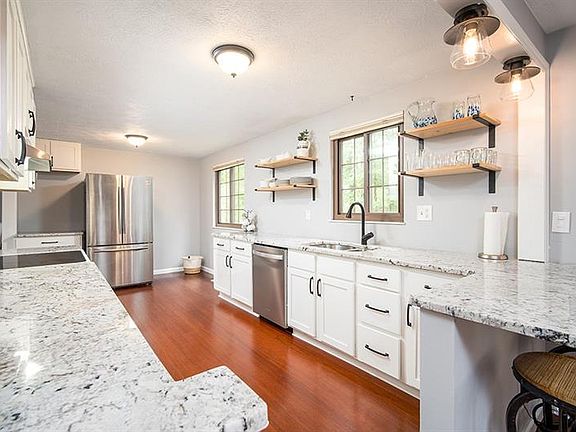 Amazing 4 bed 1.5 bath in the South Fayette School District! This home welcomes you with an open concept, completely update main living area. A dream worthy kitchen w/ white shaker cabinets, granite countertops, sleek black fixtures, stainless steel appliances, bonus seating area, coffee bar space and open shelving. Talk about an ideal kitchen! New flooring throughout the main level. A large living room with plenty of space entertain and spend time. A dinning rm, open to the kitchen, allows for large space to enjoy meals and host. Main floor is completed with half bath and access to back deck through large glass slider. Upstairs find 4 bedrooms, all with beautiful wooden window frames. An updated full bathroom on upper level. Basement leads to integral 2 car garage. Backyard is tree lined, level and offers shed. Home is close to amenities of the neighborhood. Trail is accessible from home, walk to swimming pool and clubhouse! Convenient to stores and restaurants, I-79 and Rt 19.