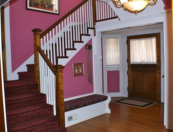 Updated kitchen w cherry cabinets granite cntrs tin ceil.Butlers pantry.Lrg Din rm and lvg rm perfect for entertaining.Firepl w mahogany mantel, built in bk cases.Lg bdrms w plenty of light. Hardwood flooring under carpeting on all floors, Wine cellar in basement, Brick oven and Grill in basement-original to house Butlers pantry and pantry closet in kitchen, Third floor currently used as attic storage could be used as additional bedrooms