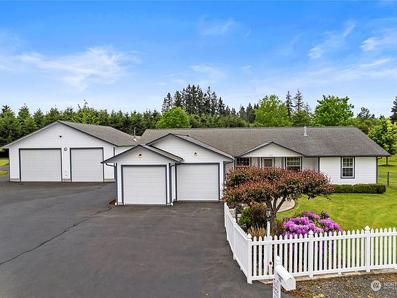 Discover the perfect blend of rural serenity & modern convenience with this meticulously maintained ranch-style rambler on 5 picturesque acres. This charming home features a spacious, open floor-plan with 3 bedrooms & 2 bath. Extremely well maintained you also have 3726 sq ft of total shop space with 12' high ceilings, ideal for RV storage or hobbies. Enjoy the comfort of a new heat pump & the efficiency of an individual well. Sprinkler system that is close to house for ease of maintenance. With 400 trees planted on the property, it's like a private park. Newer exterior paint & water access throughout the property. Don't miss the chance to own this exceptional property, offering ample space, tranquility, & practicality for your lifestyle.