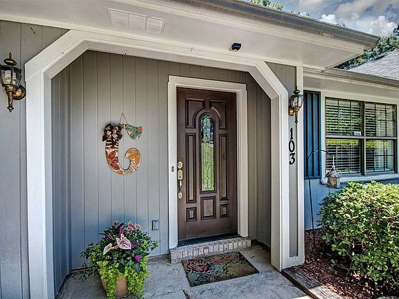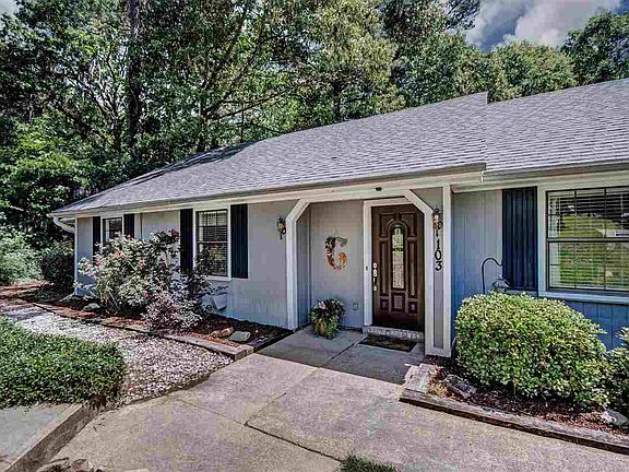 Welcome to 103 Pine Cove. This home is packed with so much charm, it is a must see on your list. Beautiful wood floors extend throughout the foyer, formal dining, living room, hall and Master. The kitchen is full of cabinets and countertops as well as a nice eat in bar. The laundry room is perfect with an extra sink and pantry. Beautiful formal dining room with built in corner curio cabinet is perfect for entertaining. The living area is spacious and cozy all at the same time. Both guest rooms have nice walk in closets. The Master is a show stopper with two walk in closets, two vanity rooms, a large garden tub and a beautiful office. The backyard backs up to the woods and is an outdoor lovers haven with two patios, beautiful landscaping and a shop or storage building. Call today for your private showing!