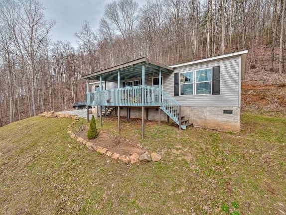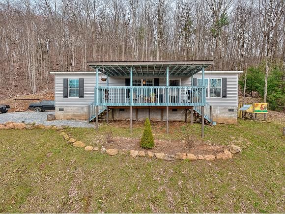 Beautiful views and peaceful serenity is what you will find here tucked away in the gorgeous Appalachian mountains. 3.76 acres backed up to National Forrest with a creek flowing on the property. A 2016 Heartland manufactured home is situated on a permanent foundation, offers 1350 sq ft, 3Br 2Ba, a wood stove for efficiency heating. Also on the property is a 16x20 unfinished cabin with a pole barn that were built with timber from the property. Looking to live off the grid? Vacation home? This property is for you