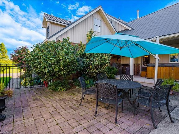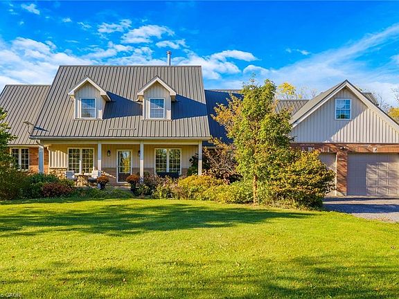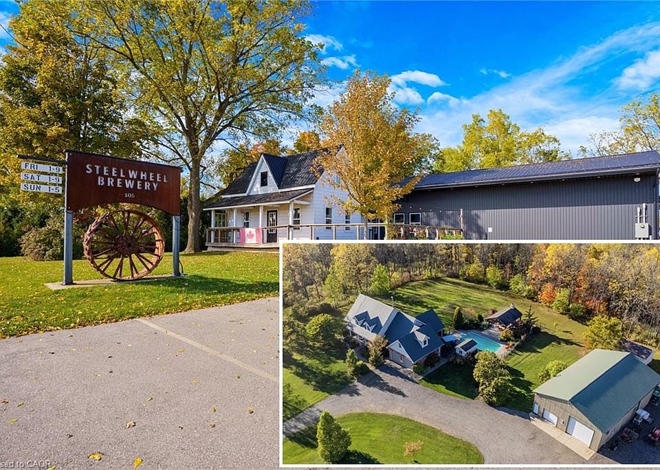A COUNTRY ESTATE WITH A CRAFT TWIST. This is a rare opportunity where lifestyle and business beautifully intertwine. Set on over 13.7 picturesque acres, this extraordinary property offers both a thriving licensed brewery operation and an immaculate 4+1 bedroom country home, creating a one-of-a-kind package for those seeking to live, work, & dream all in one place. As you arrive, the winding drive opens to sweeping lawns and mature trees framing a stately 3,000+ sq ft home, custom built in 2005. Step inside to find a warm, light-filled interior-where hardwood floors flow through spacious gathering areas, a family-sized kitchen with maple cabinetry, and a cozy living room overlooking the grounds. Generous bedrooms and a versatile loft above the garage offer plenty of space for family or guests. Outside, your backyard retreat awaits-complete with a 16’ x 32’ inground pool with its own pump house & change room, and a charming pergola with a wood-burning stone fireplace, perfect for evening gatherings under the stars. Beyond the home lies a working countryside haven: 2.25 acres of hop yard, 4.5 acres of rented hay field, + multiple outbuildings — including a 40’ x 64’ heated shop, 24’ x 48’ storage barn, & 14’ x 20’ garden shed. The highlight, of course, is the Steel Wheel Brewery, a locally beloved destination with a fully equipped brewhouse (2017), a welcoming taproom, and a Sea-Can kitchen that allows the space to operate as a full bar & restaurant. The brewery building spans 2,688 sqft, powered by 400-amp service and propane heat, and comes complete with stainless-steel tanks & equipment-offering everything you need to continue or expand. Recent upgrades include a new steel roof (2025), propane heat & AC (2024), & updated electrical throughout. Whether you’re an entrepreneur ready to take over a successful craft brewery or a family seeking a self-sustaining property with space to grow, this address captures the heart of rural living & the spirit of entrepreneurship.