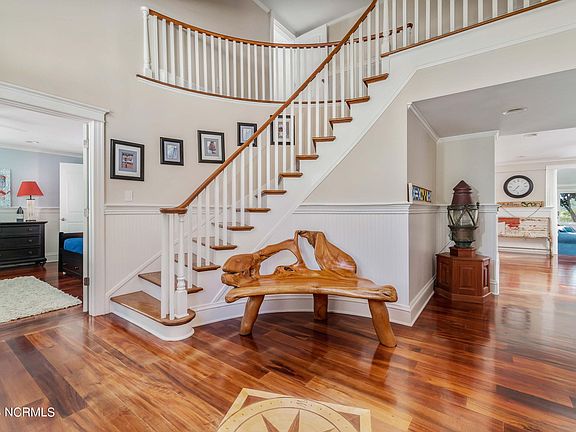 Million-dollar views abound from this beautifully remodeled, classic 3 bedroom, 3.5 bath waterfront showplace. Overlooking the waters of Green's Creek, this dream home is situated on over half an acre lot and offers the perfect blend of solitude with nature. Upon entering, you're greeted by a grand curved stairway and soaring foyer. Large kitchen/living/dining areas are complemented by a wood burning fireplace, glistening hardwood floors, and an abundance of natural light. Primary level incorporates a bar area and a second master suite with marble-floored ensuite bath. Upstairs you'll find a spacious master suite with marble floored bath, walk-in shower and tub, a guest bedroom, full bathroom, and den. With loads of charm and character, this home exudes quality craftsmanship throughout. An outdoor enthusiast's paradise, this waterfront oasis offers 180-degree water views, a waterside deck, a fire-pit, backyard dock, and boat lift. Three car garage for your cars and water toys. You'll never want to leave this home!