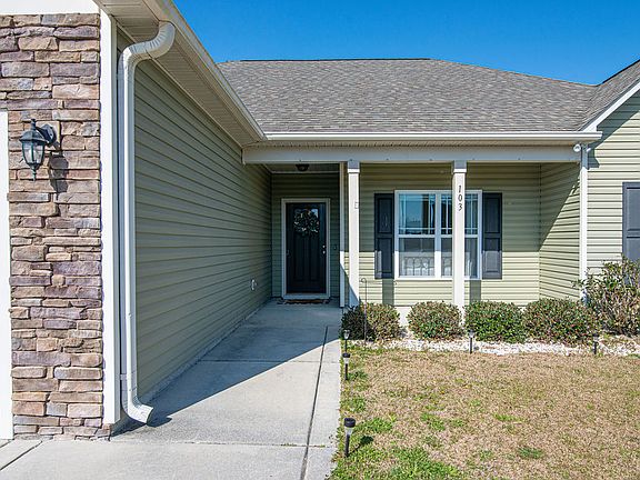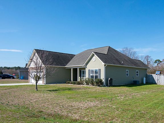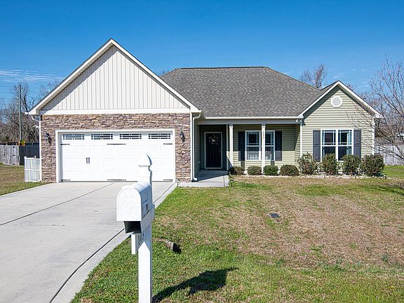 This well maintained 3 bedroom, 2 bath home features an open concept living area that is perfect for entertaining. The split bedroom style is perfect for privacy. With the master suite to left of the living area and the two additional bedrooms and full bath to the right. The master suite features a huge walk-in closet and a wonderful master bath separate shower, soaking tub, and dual vanity. Also featured is a door off the master onto the covered patio area that overlooks the huge privacy fenced backyard. The chef in the family will love the kitchen! With a center island they will have plenty of counter space to prepare family meals. Located in Canons Edge subdivision this home is convenient to area shopping, schools, and all Onslow County has to offer, but still has a quiet country feel to the neighborhood. Owner is allowing up to two pets with approval. Don't let this home slip by.