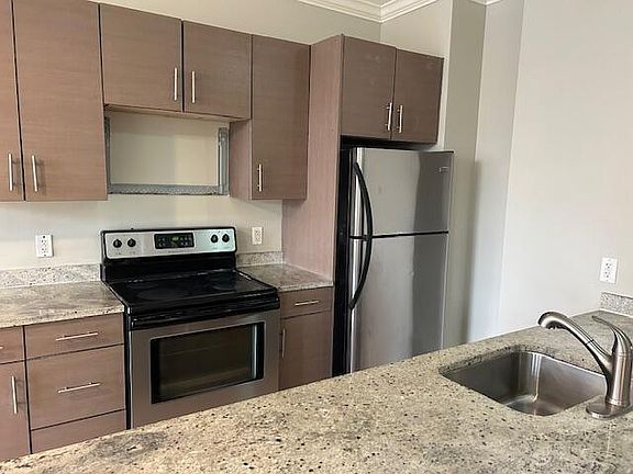 Oversized and updated 1 bedroom, 1 bathroom in luxury midrise building in the heart of downtown! Gourmet eat in kitchen with high end cabinetry, stainless steel chef's appliances- stove, dishwasher, microwave, granite countertops, breakfast bar that opens into sunfilled living area w/ sliders to private expansive balcony w/ fabulous city views, large master bedroom with enormous walk in closet, modern bathroom with tub, central air conditioning, gleaming hardwood floors throughout, fresh paint, professional gym, roof top decks with grills, clubroom, package reception, 24 hour emergency maintenance, one garage space included, walk to train, shops, nightlife, minutes to highways and beaches, pet ok Owner pays for water, sewer, trash, garage