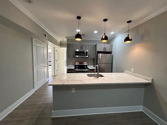 Oversized and updated one bedroom, one bathroom in modern midrise in the heart of downtown! Gourmet eat in kitchen w/ stone countertops, high end cabinetry, stainless steel appliances- stove, dishwasher, microwave, breakfast bar that opens into sunfilled living area, large master bedroom w/ walk in closet and floor to ceiling windows, generous sized second bedroom w/ double closet, fresh paint, gleaming hardwood floors, in unit washer/dryer, professional gym, roof top deck, grill, package reception, 24 hour emergency maintenance, pets welcome, walk to train, shops, nightlife, minutes to highways and beaches. Low security deposit!