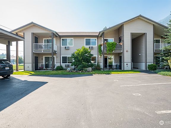 Gorgeous two bedroom ground level condo in the heart of Leavenworth! This stunning, meticulously maintained condo is ready for new owners! Walking distance to downtown Leavenworth provides easy access to shopping, dining, and local amenities without the hassle of finding parking. Two designated parking spaces, private patio, soaring mountain views and so much more. Tastefully updated throughout with spacious open concept layout. Enjoy the cozy fireplace on those snowy winter days. Low maintenance with the ability to "lock and leave" ensures the perfect primary residence or home away from home. Take advantage of proximity to Ski Hill Resort, Black Bird Island & river access. HOA fee of $210 a month pays for common area maintenance, W/S/G.