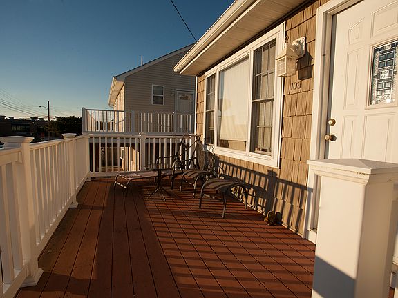 Amazing move in ready Brigantine Gem! This wonderful home is just 2 short blocks from the beach. 2 spacious bedrooms and one bright updated bathroom. Your open floor plan living room leads to your large kitchen with bar stool seating. Your full laundry room is located right off the kitchen and includes a spacious storage closet. Step outside to 2 entertainment areas. The front porch is a perfect spot to viewing the sunset and relax. The back deck leads to your large white vinyl fenced backyard with storage shed and patio. Plenty of private as well as street parking. This home also has been recently raised. So feel secure and enjoy lower insurance billing with this well constructed home! A wonderful location close to the local school and steps away from the most beautiful beach around! Don't delay make a showing to view this home today!