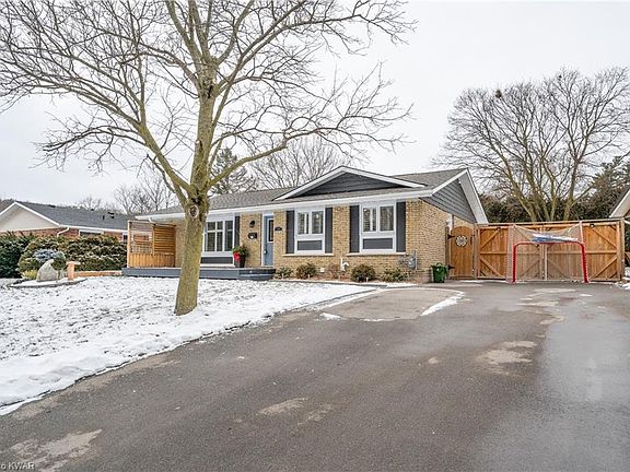 Oh la la! C'est Paris! Do you desire a fully renovated home with chic modern style and unparalleled comforts? Beautifully located on a picturesque lot, this spacious 4BR/2BA abode captivates with exceptional design and attractive architectural elements. Meticulous landscaping adorns the front yard, while the brick exterior adds a stately, yet whimsical vibe. Enter the equally impressive interior to find an organically flowing floorplan, stylish wood-toned laminate floors, a soothing colour palette, thick crown moulding, and California shutters. Peruse further to find a gorgeous kitchen featuring stone countertops, ample white shaker cabinetry, fashionable backsplash, stainless-steel appliances, built-in microwave, and an adjoining dining area. Seamlessly cook and chat with guests in the living room. Entertainment-ready for summertime parties or evening soirees, the expansive and fully fenced-in backyard includes new decks, an above-ground saltwater pool (2018) w/deck surrounds, a playground, sprawling green space, and a shed w/hydro! Retire to one of the 3 sizeable main floor bedrooms all including California closets. The main bathroom has all the modern elements including stone countertops, double sinks and extra storage. The basement has a second full bathroom with a glass shower, a huge rec room, laundry room, an oversized office and a 4th bedroom. For weekend recreation and fabulous shopping, you are only a 4-minute drive to the adorable historic district of downtown Paris (oui! oui!)! If you prefer outdoor adventure you are steps from Bean Park which has access to the Grand River w/fishing, rafting, canoeing, and bird watching! Other features: paved driveway w/6 parking spots (2018), laundry area, modern light fixtures, newer 200-amp panel, newer windows (2017), newer plumbing and electrical (2017), renovated kitchen and baths (2017). La vie est belle a Paris!