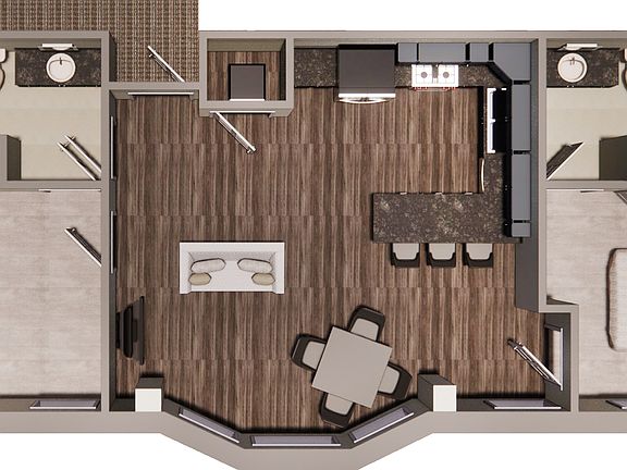 The Adcock floor plan is a 2 bed 2 bath corner unit condo located on the 3rd floor of The Q. Presale buyers may have the opportunity to choose from 4 different base packages. Base packages include; granite countertops in kitchen and bathrooms, luxury vinyl plank flooring in living areas, subway tile backsplashes, under cabinet lighting, ceramic subway tile showers and modern recessed lighting.