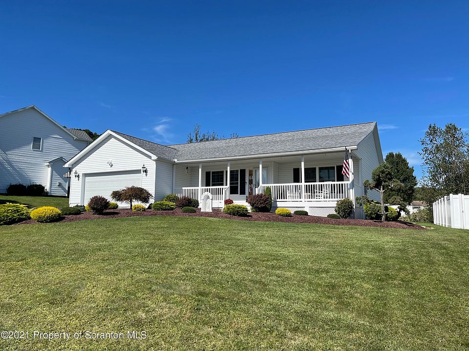 Spacious and Bright, 3 bedroom ranch in Jermyn. Open floor plan with park like setting yard. Two car attached garage, 3 bathrooms and laundry room on main level. Fenced in backyard with private patio and built in sprinkler system in lawn. Natural gas fireplace in living room and natural gas heat in basement. Handicap accessible. Close to amenities this home is really a stunner.