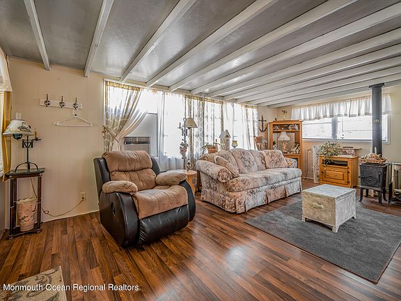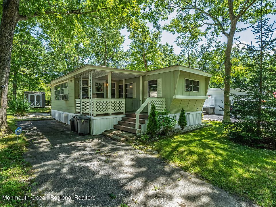 Affordable & move in ready - 2 bedroom & 1 bath - 55+ retirement home located in Pinewood Estate. This home is minutes to Long Beach Island, dining & shops! Community offers a swimming pool during the summer months, clubhouse & playground! $332 monthly association fee that includes; water, sewer, garbage & swimming pool. Other features include; Oversized covered front porch, deck has recently been painted, newer heating system, two AC windows units. Private yard with woods behind & large shed in backyard!