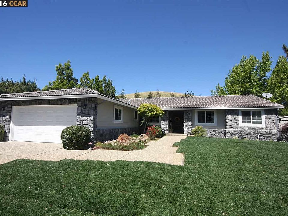 Fall In Love! Oozing with charm, this 3 bedroom, plus office with 2.5 bath single story home is sure to entice you. With approximately 1827 square feet on an 8960 square foot lot, situated near Clayton hiking trails, this house is filled with light streaming through large windows and sliding glass doors, has dark stained southern pine plank floors, newer carpeting, and features a great room with a beamed, vaulted ceiling with recessed lights, a fireplace flanked by window seats, and view of the pool and surrounding hills. This home will make you fall in love. • Recently re-sodded front yard • Southern Pine plank floors • Sliding glass door in living room leads to pool and patio • Newer double paned windows throughout • Newer carpet in living room and carpet 2016 • Office with French doors offering privacy • Great Room with gas-starter fireplace, window seats, vaulted ceiling, recessed lights and chandelier with sliding glass door leading out to patio • Kitchen has white tile and wood block countertops, a breakfast bar, oil rubbed bronze fixtures, double ovens, recessed lights, wood floors • Laundry with tile floors and storage area • ½ bath with pedestal sink • Master bedroom with new carpet, dual closets, and sliding glass door leading to patio and pool • Master bath with tiled stall shower, tile floor • Hall bath with newer white, fresh tile surround, and newer tile floor • 2 extra bedrooms with pine floor, double closets • Custom 4 inch baseboards and trim • Lifetime tile roof • Fiberglass pool surrounded by large patio • Backs to open space maintained by City of Clayton • 2 car garage • Near hiking trail head to Mount Diablo, trail to downtown Clayton • Near Clayton dog park and community park • Well regarded Clayton Schools