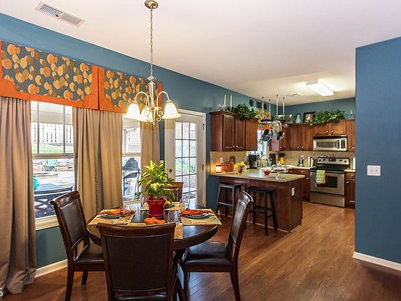 Gorgeous former model home with tons of upgrades. Hardwood floors on main. Fenced back yard with gorgeous covered stone patio and custom fire pit. Custom window treatments. Two story great room with fireplace. Master has sitting area and beautiful master bath. Large secondary bedrooms with Jack and Jill bath and separate vanities. Large corner lot. Great neighborhood and convenient to 575.