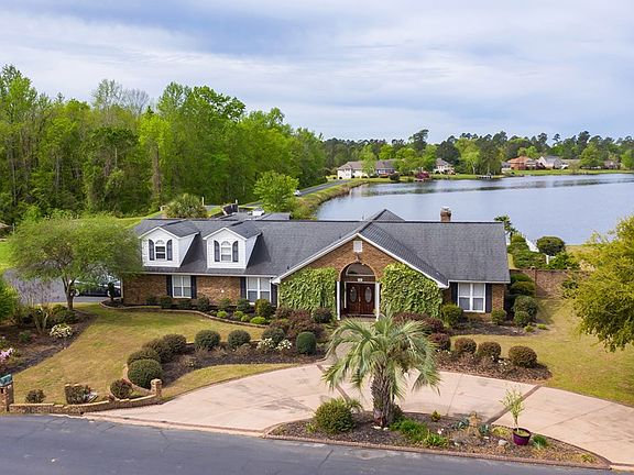 Unique waterfront home on scenic Lake Arbu in gated Wyboo Plantation. This home, which was once the community center, sits on .7 of an acre & includes a private dock, boat lift, 17,500-gallon salt water pool, fenced backyard for privacy, 725 sq ft heated garage/workshop, pool house w/ storage shed, outside shower & bath, & screened porch facing the lake for viewing the finest sunsets. Inside you will find 2861 sq ft of endless possibilities. 1st level features a den, 4 additional rooms that can be utilized as bedrooms, several do not have closets, 2 smaller rooms can be used as offices/closets, 2 full baths & a large living room that flows into the kitchen/dining area. 2nd level features a bonus room perfect for crafting, an office & additional bath. This home is truly one of a kind.