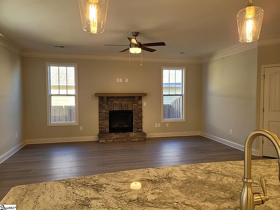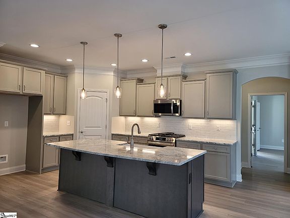 Upscale new community between Simpsonville and Mauldin. New construction 4 bedrooms plus a bonus room and 3 full baths. Wonderful new craftsman style neighborhood with quality built homes with many custom features From the moment you walk in the spacious foyer with a tray ceiling. This home features a dream kitchen with multi-level shaker style 42" tall cabinets with crown molding, granite countertops, under cabinet lighting, upgraded stainless steel appliance package including gas range, tile backsplash, pendant lights over the huge island, to give extra seating and work space. There is a stacked stone fireplace with gas logs in the great room. The dining area opens to the covered back porch. There is Craftsman style wainscoting in foyer and dining area. Primary bedroom is on the main level featuring a tray ceiling with deep moldings, five piece bath with a long vanity with double sinks and the huge walk in closet that has multiple level hanging. As you go out back you will see a large covered back porch featuring a stack stone gas fireplace plus a patio for your enjoyment and quiet time. The yard has ben fully sodded and has an irrigation system. The upstairs features a full suite that could be a second master bedroom because it is so large, a full bath and a bonus/media/theater room.