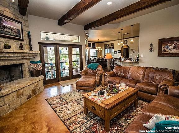 HILL COUNTRY PARADISE! BEAUTIFUL EVENING VIEW FROM YOUR PRIVATE SHADED BACK PORCH ENCOURAGES YOU TO HURRY HOME EVERY DAY. OUTDOOR LIVING IS EXCELLENT. CUSTOM HEATED POOL/SPA SURROUNDED BY FLAGSTONE AND A LARGE COVERED BACK PORCH WITH A FIREPLACE. HOME IS GORGEOUS AT EVERY TURN. OPEN KITCHEN/FAMILY ROOM WITH A BEAUTIFUL CORNER FIREPLACE. GREAT KITCHEN WITH DOUBLE OVENS, ISLAND AND CUSTOM CABINETS. GRANITE COUNTERTOPS THROUGHOUT HOME. PANORAMIC VIEWS FROM LARGE UPSTAIRS GAMEROOM WITH WETBAR/1/2 BATH.