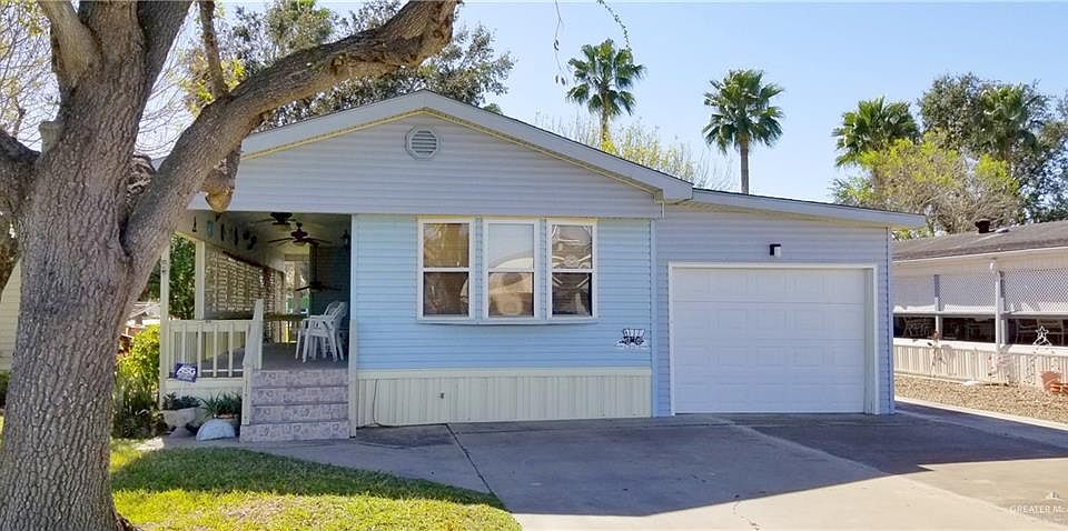 Very nice and well-cared for one bedroom one bath mobile home on a cement slab with a one car garage, a tiled covered deck, an attached workshop and a big storage shed in the back. The property is surrounded by mature trees and is situated directly behind the activity center. The fully-furnished home itself features laminate wood floors, laminate counter tops, hand-rails in the hall, double-pane windows and an elevated covered deck. The park itself has an activity center, a pool, shuffleboard and many other amenities to numerous to mention. This 55+ community is one of the cleanest, quietest and friendliest parks in all of the Rio Grande Valley. Is situated right-off one of the Great City of Mission's thorough fares that will take you directly to expressway 83 or too many restaurants, shopping, banks and golf within minutes. Note, the trailer in the garage does not convey.