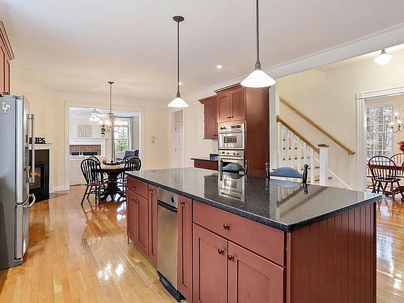 At end of a winding, tree lined drive, on top of the hill, sits this stately, 2003 built colonial home. Warmly welcomed by a generous foyer, then walking past the formal living room, one is drawn into the open, fireplaced kitchen and family room. With an expansive granite island and chef's amenities, the kitchen's sunny view out to the patio and in-ground pool is mesmerizing. This four or five bedroom, three and one half bath home features a comfortable eat-in-kitchen, formal dining room and fireplaced master suite. Thoughtfully designed with geo thermal heat and cooling, the home's flow is perfect for guests and entertaining, with parking for many and garage space for seven. For one who values privacy, this rare find is sited on 14+ acres and located in the peaceful berg of Topsfield, just moments from Route 95 and beyond.