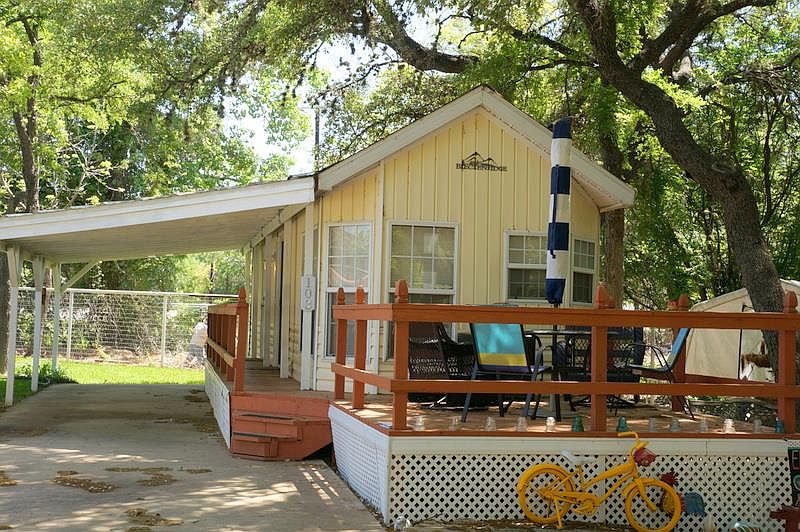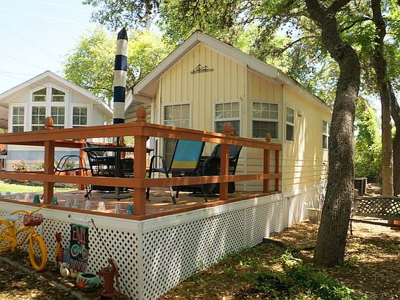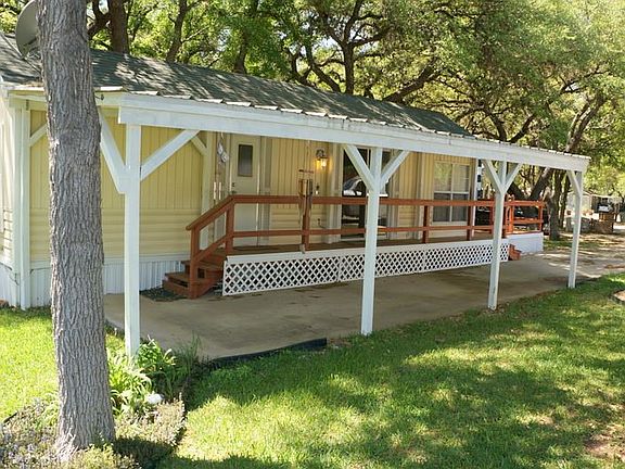 Waterfront gated community. Neat as a pin 1/1 park model home that comes furnished. Lots of shade trees in the park along with a great common area along the waterfront. The lot rent includes space rent and all utilities except electricity. Ample covered parking along unit and a good sized deck to enjoy the evenings. Ideal for a weekend getaway Park is a 55 and older community. Lot rent is currently $375 per month that includes water, trash, sewer and lawn maintenance. Nice size kitchen, stackable washer and dryer and lots of storage space. Unit has been well maintained. Rivers Edge Park is close to Kingsland. A 10 minute drive to Marble Falls.