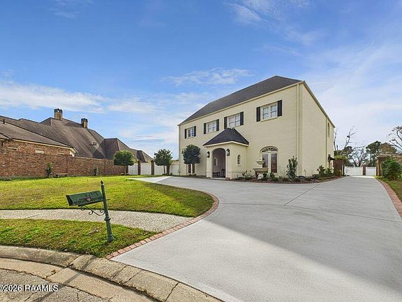 An Iconic French Quarter-Inspired Estate in the Heart of BroussardWelcome to 103 Riviera Court-a rare architectural masterpiece where Old-World New Orleans charm meets modern luxury living. This extraordinary residence showcases fresh designer paint, and curated fixtures throughout, delivering a refined, magazine-worthy presentation.At the center of the home lies a grand, brick-enclosed atrium courtyard, a breathtaking homage to the French Quarter and the defining element of this estate. With soaring ceilings crowned by six oversized skylights, the atrium is bathed in natural light by day and transforms into an enchanting setting by night. This architectural showpiece opens seamlessly into nearly every room, creating a fluid layout ideal for both intimate gatherings and grand-scale entertaining.Designed for the most discerning chef, the kitchen is anchored by a Vulcan commercial-grade gas range and complemented by a luxurious butler's pantry that elevates both function and presentation. The formal dining room offers gracious proportions, easily accommodating a table for twelve with ample space for a China buffet and additional furnishings--perfect for hosting unforgettable dinners.The great room/den offers versatility and elegance, previously featuring a pool table with custom lighting, and now framed by an expansive wall of windows overlooking the manicured backyard and golf course. Throughout the home, custom built-ins add beauty, storage, and architectural depth.Ascending the staircase, you arrive at the balcony overlooking the magnificent atrium below. The primary suite is a true private sanctuary, featuring an adjoining study with floor-to-ceiling built-ins, dual oversized walk-in closets, a refined dressing area, and a spa-inspired bath complete with a soaking tub and an expansive custom shower.A private downstairs guest suite with its own bath and separate exterior entrance provides the perfect accommodations for guests.