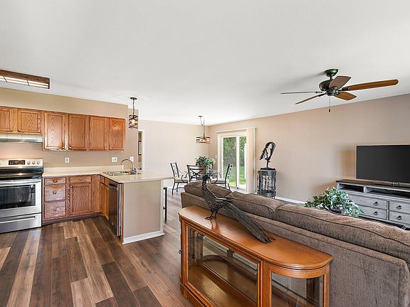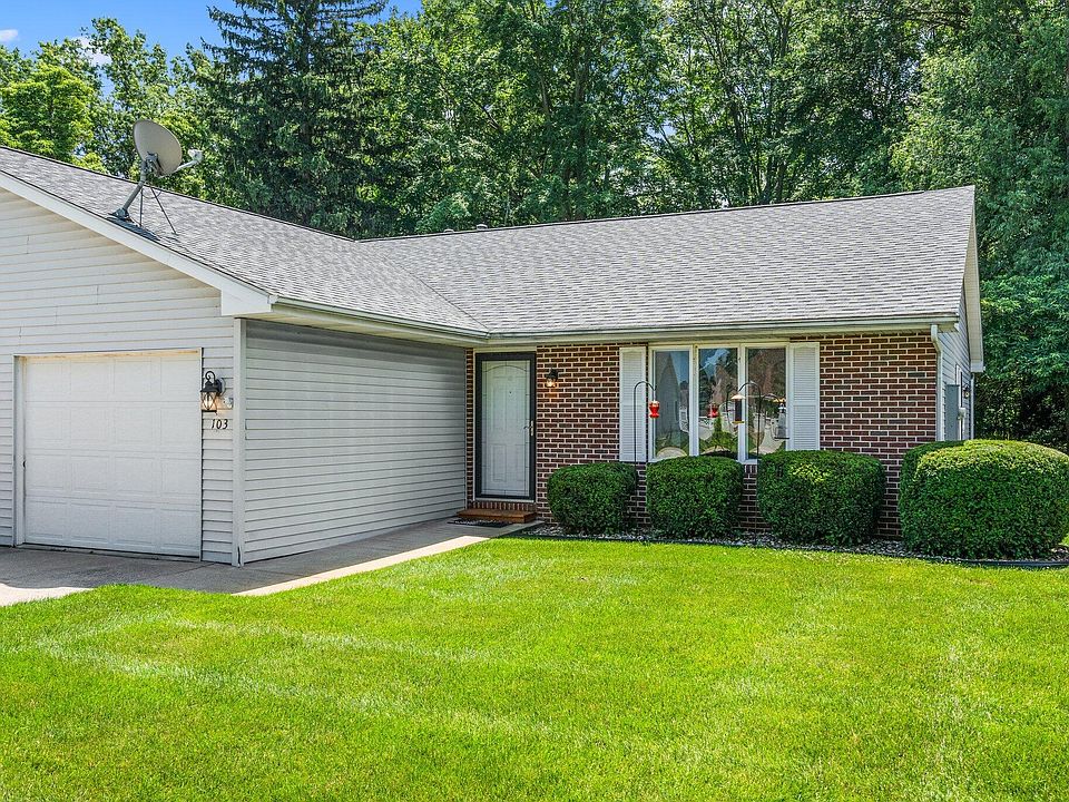 IMMACULATE & UPDATED 2 BEDROOM/2 BATH Open Concept CONDO! Updates, in the past 3 years, include; newer laminate flooring, interior freshly painted, light fixtures, HWH, AC and stainless steel appliances. Dining Area has sliding glass doors that open to a concrete patio with a partial privacy fence. The kitchen overlooks LR and DR and has newer appliances and a pantry. Master Bedroom with 3/4 Bath and walk-in closet. The secondary hall Bath has an extra large shower and door opening! Laundry Room with washer/dryer and storage shelf. ALL appliances stay! Furniture/Decor is available for purchase. HOA mows/blow clippings, snow removal of driveway and sidewalks.