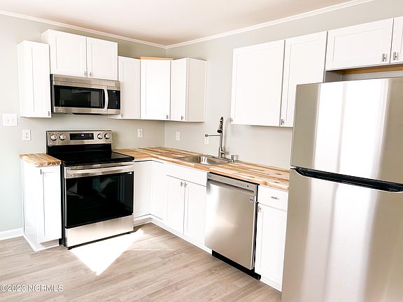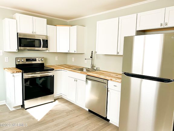Welcome to 103 Robin Rd! This super cute 2 bedroom, 1 bath house has been updated through out. All new laminate and LVT (in the bathroom), there is NO carpet in this house! The kitchen has brand new cabinets, butcher block counter tops and new stainless steel appliances. The bathroom has a brand new tub/shower surround, toilet and vanity. There is all new lighting throughout, fresh paint and even all new doors. Tuesday 1/24 there will be a BRAND NEW HVAC and duct work installed. There is a HUGE fenced in back yard and the house is centrally located to shops, schools, restaurants, and Camp Lejeune.