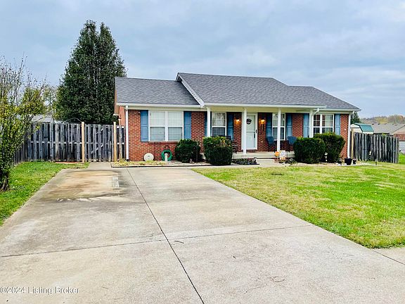 This home sits on a quaint cul-de-sac minutes from the historic heart of Bardstown and the convenience of the amenities it has to offer. Situated off Hwy 245 and close to a mile from Hwy 31, this home offers a convenient commute to surrounding areas. Outside, you are greeted with a well-maintained landscape. Upon entry, you will find the family room with hardwood floors that extend through the hallway. To the right of the home, you have the primary bedroom with its own private ensuite as well as two other good size bedrooms. The front room features a large window to allow the sunlight to flood in. A bathroom is nestled between the 2 guest rooms. The eat-in kitchen can be found on the left side, and it encompasses a nice island with room for bar seating. The laundry room is conveniently located just off the kitchen. Outside you will find an ample backyard with complete privacy fence to enjoy with friends and family. The attached deck is perfect for entertaining during grilling season! The backyard also offers a hidden gem, a large shed with concrete floors and electricity, perfect for extra storage or hobbies. The seller has also done some great extras with the added home security system and water softening system installed in the home. Come see this sweet home for yourself today!