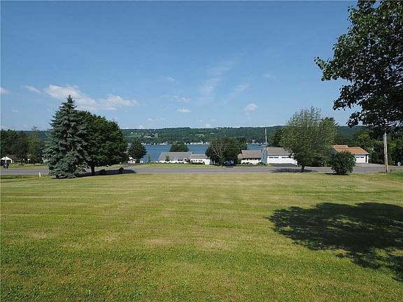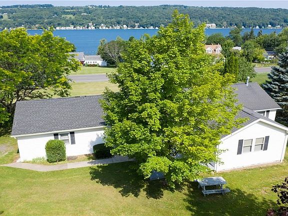 YEAR ROUND KEUKA LAKE VIEW. Spacious 3 bedroom, 2 bath Ranch home. Watch glorious Keuka sunsets from the front porch. Open floor plan that flows easily from kitchen to living & dining areas. French doors open to an inviting family room with cherry floors & gas fireplace. Master bedroom has an attached bath. A wall of shelves in the breezeway, perfect for your books or collectibles. A large basement with room for a workshop or recreation space. 2 Car attached garage with electric door opener. Rear deck for your summer Bar-B-Qs. Huge back yard with garden, trees, flowers, & storage shed. Public utilities! Home warranty included with sale.